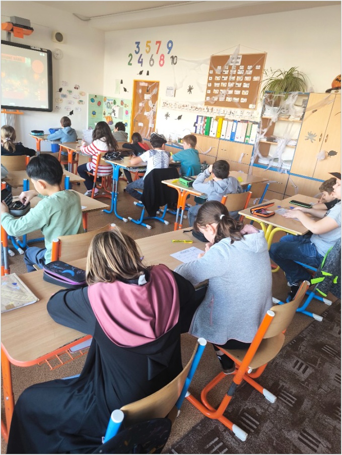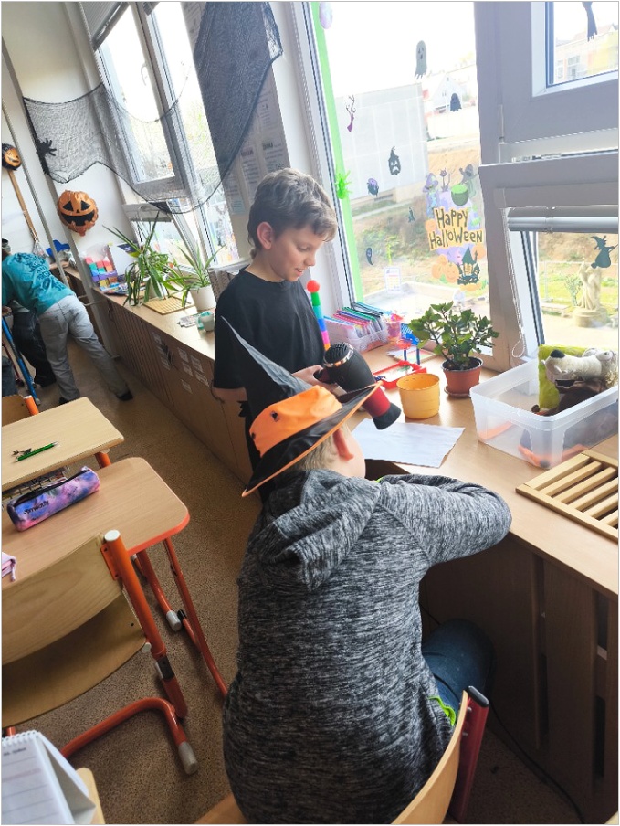 V pátek 31. 10. se třída 5. A vydala během hodin na dýňobraní🎃. Žáci nasbírali dýně, ale své znalosti z matematiky a českého jazyka. Během přírodovědy si ve skupinách vyzkoušeli různé čarodějné pokusy. Celý den jsme si užili.🧡