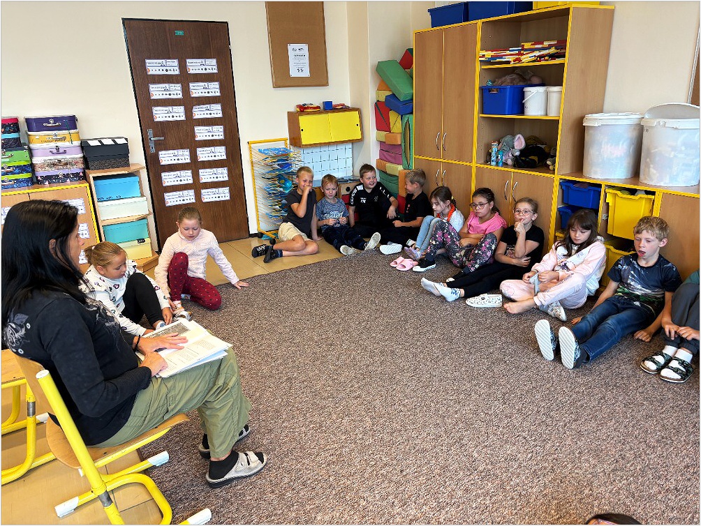 V hodinách prvouky jsme si povídali o historii města, pracovali s mapou a objevovali, kde se tyto příběhy odehrávaly.