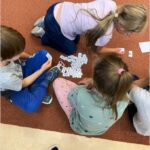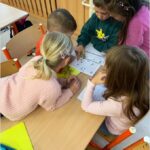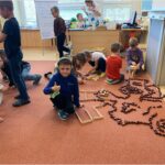 V září nás provázela pohádka ČERVENÁ KARKULKA a v říjnu nás provázel Smolíček. Nejvíce nás bavilo stavět ze stavebnice KAPLA, byli jsme na výuce venku, pracovali ve skupinkách, tvořili jsme obrázek z ČERVENÉ KARKULKY a jelena nebo Jezinku z kaštanu a dalších přírodnin.