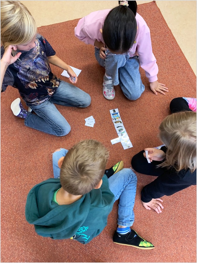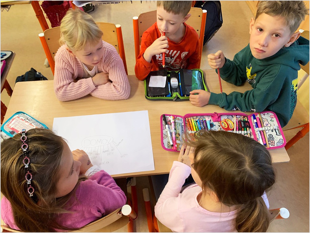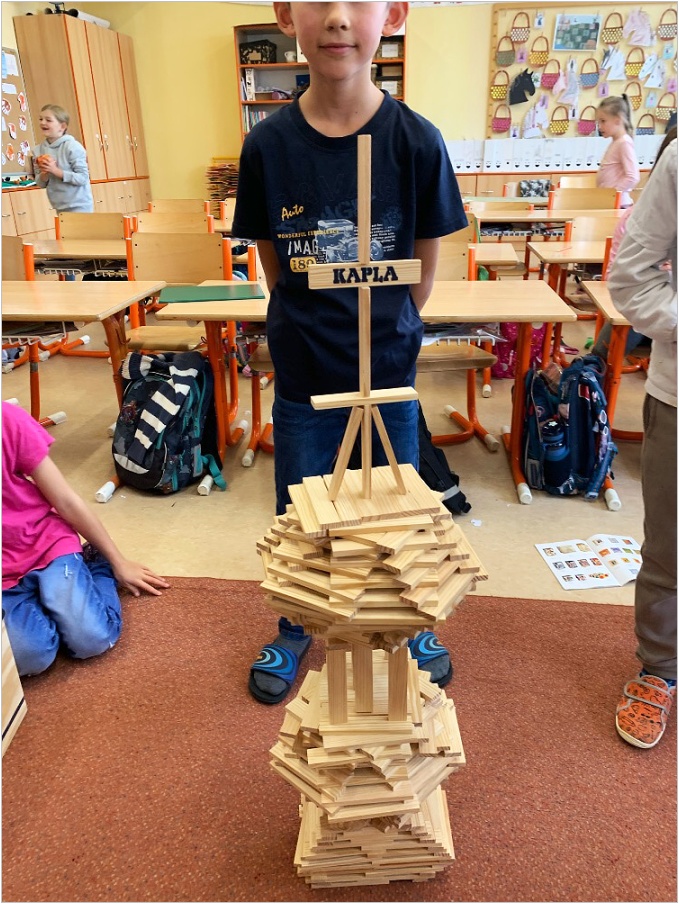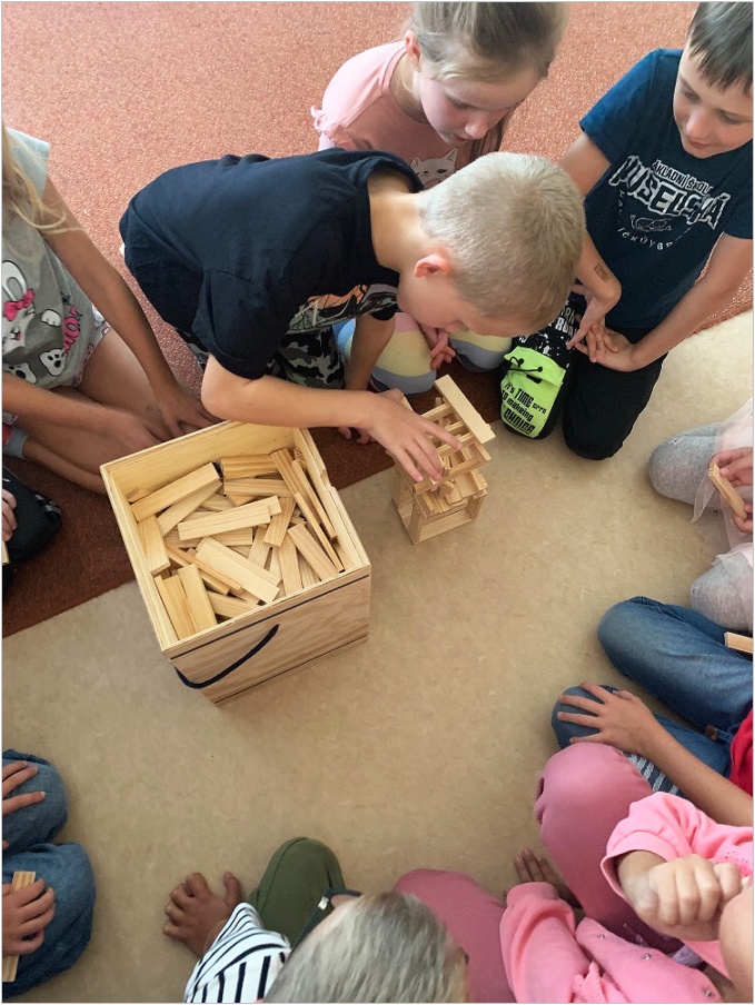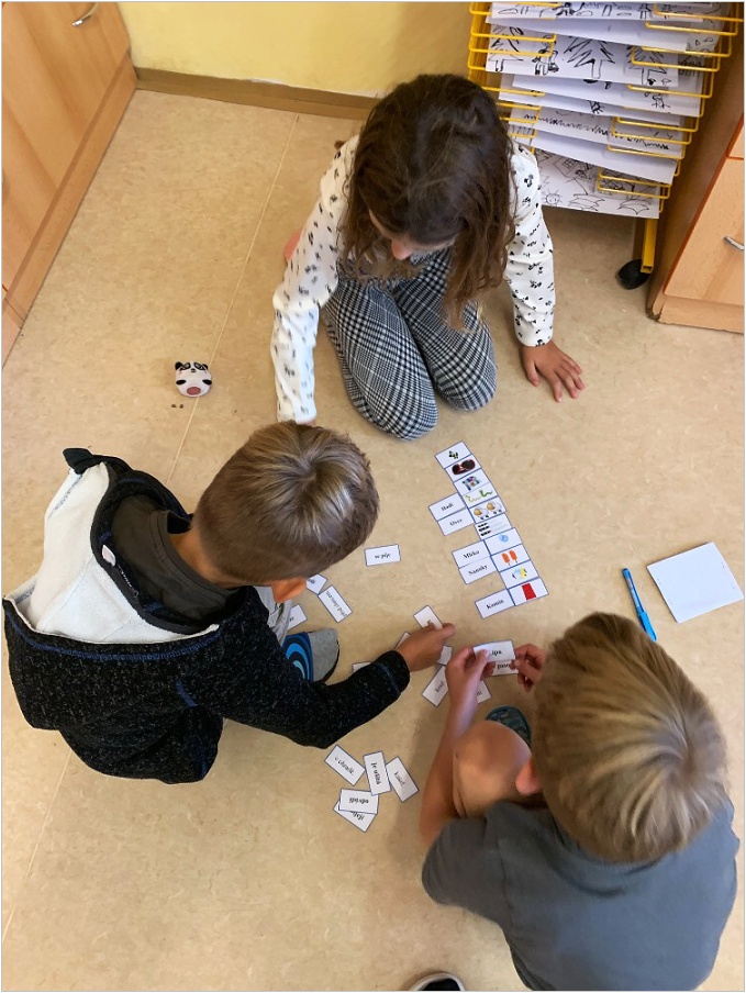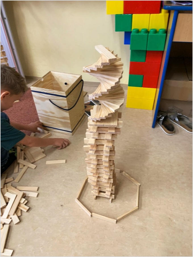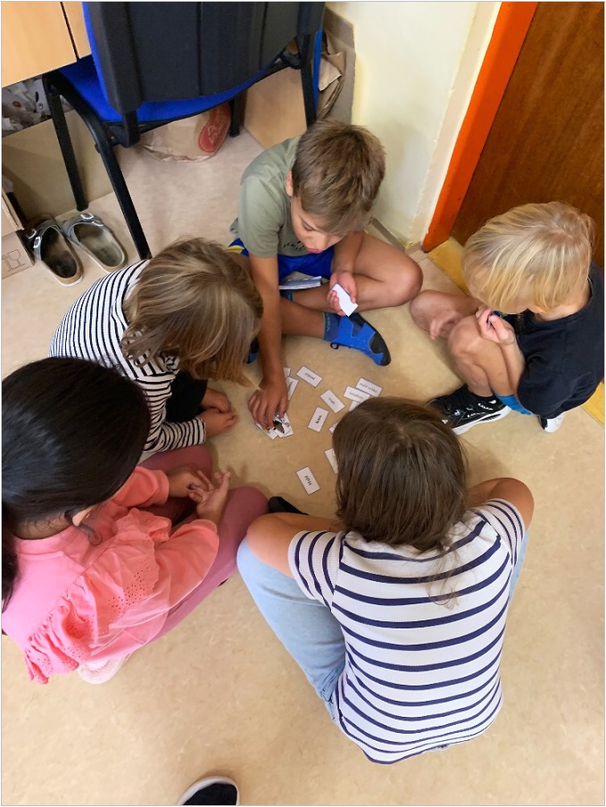 V září nás provázela pohádka ČERVENÁ KARKULKA a v říjnu nás provázel Smolíček. Nejvíce nás bavilo stavět ze stavebnice KAPLA, byli jsme na výuce venku, pracovali ve skupinkách, tvořili jsme obrázek z ČERVENÉ KARKULKY a jelena nebo Jezinku z kaštanu a dalších přírodnin.